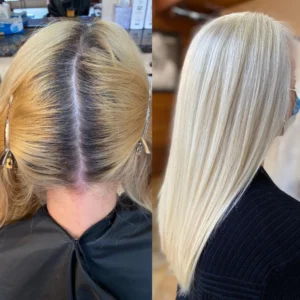 Achieve flawless roots with our Bleached Root service for vibrant style.
